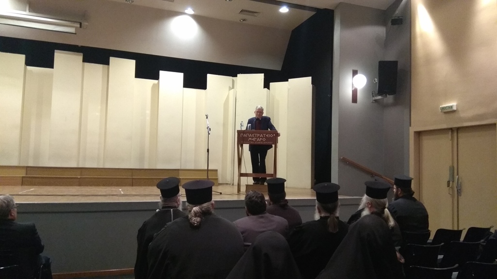 Συνεχίζοντας την ομιλία του ο καθηγητής κ. Σπανός αναφέρθηκε στα χαρίσματα εκείνα που ήταν κοινά και στους Τρεις Αγίους Πατέρες, κάνοντας παράλληλα αναφορές και συγκρίσεις με το σήμερα.