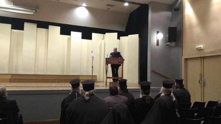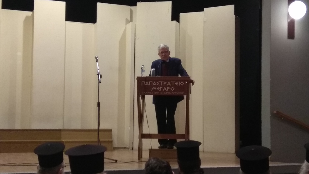 Ομιλητής ήταν ο ελλογιμώτατος κ. Γεώργιος Σπανός, ομότιμος καθηγητής Παιδαγωγικής της Φιλοσοφικής Σχολής Αθηνών, ο οποίος ανέπτυξε το θέμα: «Η διαχρονικότητα του έργου και της διδασκαλίας των Τριών Ιεραρχών».