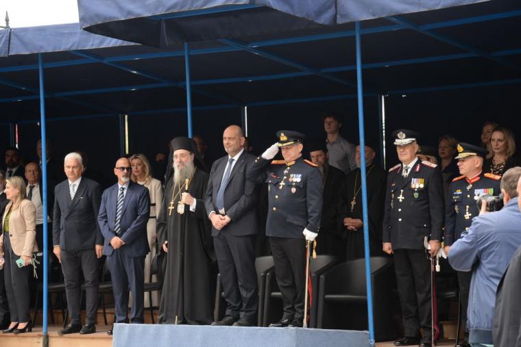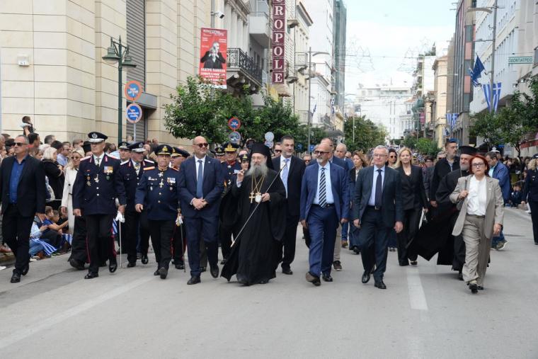 · Τέλος ὁ Σεβασμιώτατος παρηκολούθησε καί εὐλόγησε τήν μεγαλειώδη παρέλαση τῶν πολιτικῶν καί στρατιωτικῶν τμημάτων καί συνεχάρη ἰδιατέρως τούς Μαθητάς καί Φοιτητάς καί τά Στρατευμένα παιδιά μας.