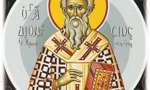 Ο Άγιος Διονύσιος ο Αρεοπαγίτης, ο «τοῦ Παύλου τήν διδαχήν ἀσπασθείς», ο «ζηλωτῶς πρός καθαίρεσιν τῶν εἰδώλων ἀναλωθείς», ο «τῷ πυρί παρεδόθη καί τοῖς Μάρτυσι κατηριθμήθη» έρχεται στη σημερινή εποχή να μας διδάξει και να μας αφυπνίσει με την αγάπη του στον Ιησού Χριστό, ώστε να διατηρήσουμε αναλλοίωτη τη φλόγα της χριστιανικής πίστεως στους δύσκολους και χαλεπούς καιρούς μας, για να την παραδώσουμε στη συνέχεια στις νεότερες γενιές ως πολύτιμη πνευματική παρακαταθήκη.