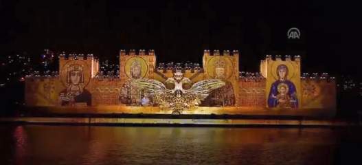 Ο Σουλτάνος στις 29 Μαίου του 2018 και στην φιέστα που έκανε για την Άλωση της ΠΟΛΗΣ με άρωμα εκλογών έστησε μια εξέδρα στον Βόσπορο και με ολογράμματα έδειξε πως έριξε ο Μεχμέτ( δηλ. ο Μωάμεθ) τα τείχη στα οποία φρόντισε ο αθεόφοβος να σχηματίσει και την εικόνα της ΥΠΕΡΑΓΙΑΣ ΘΕΟΤΟΚΟΥ την οποία και κατακρήμνισε εικονικά.