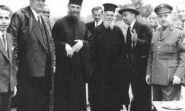 Οι μακάριοι Γέροντες Αμβρόσιος (αριστερά) και Πορφύριος (δεξιά) μαζί με κάποιους κοσμικούς σε προσκυνηματική επίσκεψή τους