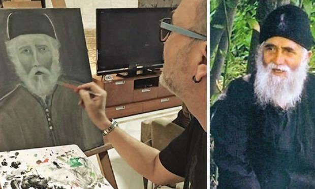 Οι προσωπογραφίες του είναι λιτές, με χαρακτηριστικό την ηρεμία στο βλέμμα. «Οταν ολοκλήρωσα τα πρώτα μου έργα, τα παρουσίασα σε λίγους και καλούς μου φίλους. Ολοι αναγνώρισαν σε ένα από τα πρόσωπα τον άγιο Παΐσιο, τη μορφή του οποίου δεν είχα δει πoτέ μέχρι τότε» συμπληρώνει ο τραγουδιστής, που λέει πως όταν ξεκίνησε να σχεδιάζει τον συγκεκριμένο πίνακα δεν είχε ιδέα τι ήθελε να ζωγραφίσει.