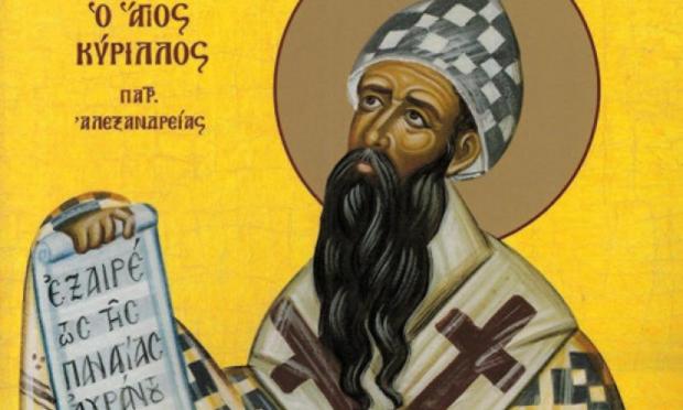 Τη μνήμη του Αγίου Κυρίλλου Πατριάρχη Αλεξανδρείας τιμά σήμερα, 9 Ιουνίου, η Εκκλησία μας. Ο Άγιος Κύριλλος έζησε επί βασιλείας Θεοδοσίου του Μικρού και γεννήθηκε στην Αλεξάνδρεια το 370 μ.Χ. από εύπορους γονείς της ελληνικής κοινωνίας της πόλεως.