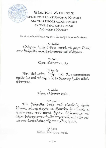 Σε πολλές Μητροπόλεις τελούνται τις τελευταίες ημέρες δεήσεις για την προστασία και αντιμετώπιση του ιού που καλπάζει πλέον και στη χώρα μας.