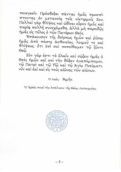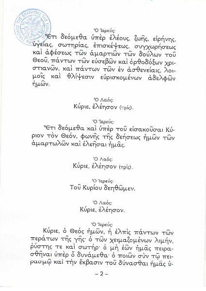 - Οι Υπηρεσίες της Ιεράς Συνόδου, της Ιεράς Αρχιεπισκοπής Αθηνών και των Ιερών Μητροπόλεων να λειτουργήσουν για το κοινό, μόνο για μία ώρα ημερησίως κατά τις εργάσιμες ημέρες.
