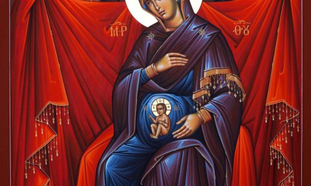 Πόσα κείμενα έχουν γραφτεί για την Παναγία και πάλι είναι λίγα και πάντα θα είναι λίγα για να εγκωμιάσουν το τιμιώτατο Πρόσωπό της. Όμως και οι άνθρωποι δεν θα σταματήσουμε ποτέ να κάνουμε το έργο αυτό, να μιλούμε για Εκείνη, να την υμνούμε, να την ευχαριστούμε για το μέγιστο γεγονός της Ενσάρκωσης του Λόγου, της Ενανθρώπησης του Χριστού. Η Παναγία ήταν αυτή που υπηρέτησε το μεγάλο Μυστήριο, το γεγονός ότι ο Θεός έγινε άνθρωπος και ο άνθρωπος μπορεί να γίνει θεός. Ο Θεός διάλεξε να έρθει στον κόσμο με αυτόν τον τρόπο, μέσω του ανθρώπου. Κατά τον λόγο σύγχρονου διανοητή « Ο Θεός επιθυμεί, εξ αγάπης, να ζήσει την ζωή του πλάσματός Του, και αποκτά έτσι έναν αιώνιο, ανθρώπινο μαζί και θείο εαυτό, και ο άνθρωπος, από την άλλη, αγαπά και επιθυμεί να ανοίγεται στην ίδια την ζωή του Θεού, βρίσκοντας τον αυθεντικό και πλήρη εαυτό του σ’ Αυτόν». Αυτό το αποτέλεσμα, που δίνει την δυνατότητα της θεώσεως σε κάθε άνθρωπο, πραγματοποιήθηκε στην κοιλία της Παναγίας, την οποία η Πατερική Γραμματεία ονόμασε «εργαστήριο ενώσεως των δύο φύσεων». Σε αυτό ακριβώς ας σταθούμε. Στην κοιλία της Θεοτόκου που έζησε ο Χριστός για εννέα μήνες. Ο Χριστός που ήταν και είναι Θεός και άνθρωπος. Τι απερίγραπτο βίωμα είχε η Παναγία; Όλος ο θεάνθρωπος μέσα στα σπλάγχνα της! Γι’ αυτό και οι Πατέρες μένουν μόνο σε αυτό, εγκωμιάζοντάς την και δεν εισέρχονται στις ομιλίες τους στο βάθος αυτού του Μυστηρίου. Τι να πουν; Τι να ερμηνεύσουν; Τι να γράψουν; Είναι Όλο και Όλη ένα Μυστήριο.