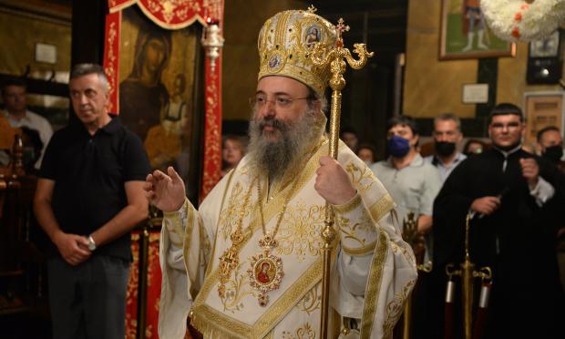 Ὁ Σεβασμιώτατος ἐμνήσθη καί τῶν πολλῶν δυσκολιῶν καί κινδύνων τούς ὁποίους ἀντιμετώπισε ἡ Ὀρθόδοξη Πατρίδα μας, ἀνά τούς αἰώνας μέ τήν θαυμαστή προστασία τῆς Ὑπεραγίας Θεοτόκου.