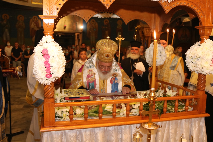 »Επάνω από την πεζότητα του βιοτικού αγώνα και την κρισιμότητα των καιρών, που διέρχεται την περίοδο αυτή ο τόπος μας υπό τον κίνδυνο μιας σύρραξης στα ανατολικά σύνορά μας, υπό το κράτος της ανίερης και βέβηλης μετατροπής της Αγίας Σοφίας σε τζαμί, μετά από 86 χρόνια, με την αβεβαιότητα που δημιουργεί η πανδημία του κορωνοϊού και η πίεση των παράνομων μεταναστών, αγρυπνεί η άπειρη αγάπη της Παναγίας Μητέρας μας, όπως επάνω από το λίκνο του βρέφους αγρυπνεί η φιλόστοργη μητρική καρδιά. Ο ελληνικός λαός μας στην Παναγία αναθέτει τις ελπίδες του, ο άρρωστος τον πόνο του, ο στρατιώτης την κρισιμότητα της μάχης, ο γέροντας την αναπηρία του, το ορφανό την εγκατάλειψή του, ο μελλοθάνατος την επιθανάτια αγωνία του, το ορφανό την μοναξιά του, η φτωχή χήρα μητέρα την δυστυχία της. Όλες αυτές οι δυστυχισμένες υπάρξεις από Αυτήν αντλούν θάρρος, φως και δύναμη.