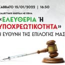 Εκκλησία 16.01.2022 - 17:26 0 Ολόκληρη η διαδικτυακή ημερίδα «EΛΕΥΘΕΡΙΑ Ή YΠΟΧΡΕΩΤΙΚΟΤΗΤΑ» η ευθύνη της επιλογής μας (βίντεο)https://youtu.be/U1ofsdjL3dI