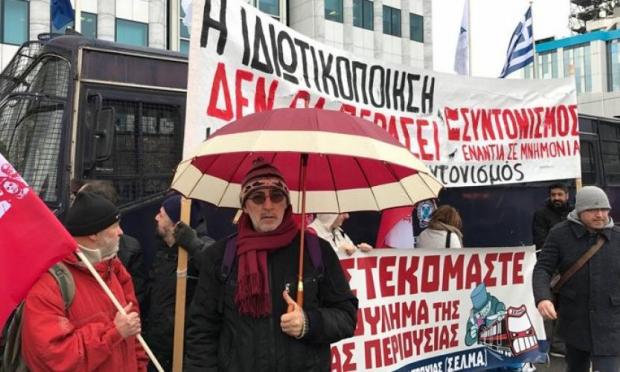 Συγκέντρωση διαμαρτυρίας πραγματοποιούν αυτή την ώρα εργαζόμενοι της ΕΥΔΑΠ, μέλη του κινήματος «Δεν πληρώνω» και της Λαϊκής Ενότητας έξω από το Χρηματιστήριο Αθηνών ενάντια της ιδιωτικοποίησης της εταιρίας.