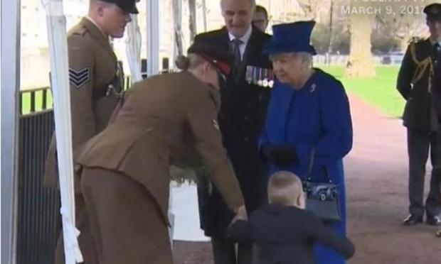 Συνήθως ο περισσότερος κόσμος συμπεριφέρεται με τον καλύτερο δυνατό τρόπο μπροστά στη βασίλισσα Ελισάβετ, αλλά αυτός ο μικρός πιτσιρίκος δεν ήθελε με τίποτα να παραμείνει ακίνητος, κατά τη διάρκεια της παρουσίασης εθνικού μνημείου για τις ένοπλες δυνάμεις για τους δύο πολέμους του Κόλπου.
