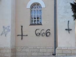 Πριν δύο ημέρες άγνωστοι ακραίοι Εβραίοι ακτιβιστές ζωγράφισαν σατανικά σύμβολα με μαύρο και ασημί χρώμα στο εξωτερικό μέρος της ρωσικής Εκκλησίας του Αγίου Ηλία στην ισραηλινή πόλη της Χάιφα.