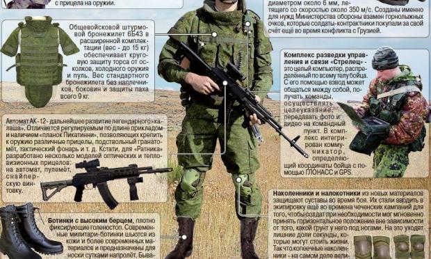 Το “Ratnik” ειναι ένα σύστημα προηγμένου εξοπλισμού προστασίας και επικοινωνιών. Αποτελείται περίπου κατά 40 τοις εκατό από στοιχεία προστασίας και υποστήριξης ζωής και επιτρέπει στον στρατιώτη να λαμβάνει συνεχόμενες επικαιροποιήμενες πληροφορίες σχετικά με την τακτική κατάσταση σε μια εμπόλεμη περιοχή. Επιπλέον, το “Ratnik” περιλαμβάνει ένα αυτόνομο θερμαντήρα, ένα σακίδιο πλάτης, ένα ατομικό φίλτρο νερού, μια προσωπίδα αερίων και μια ιατρική συλλογή.
