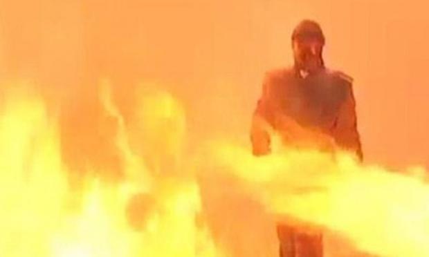 Στο υλικό που δόθηκε στη δημοσιότητα, ένας άνδρας που φοράει την στολή περνάει μέσα από τις φλόγες σε ένα πεδίο δοκιμών και στέκεται σε απόσταση αναπνοής από μια έκρηξη, προστατευμένος από το εξαιρετικά ανθεκτικό, αλλά παράλληλα άνετο και εύκαμπτο υλικό της στολής του.