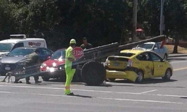 Τροχαία συμβαίνουν πολλά, αλλά αυτό που είδαν οι κάτοικοι και οι αρχές της πόλης Νανάιμο του Καναδά μάλλον θα τους μείνει αξέχαστο. Και αυτό γιατί ένα πυροβόλο του στρατού λύθηκε από το στρατιωτικό όχημα που το ρυμουλκούσε και μετά από μία τρελή πορεία έπεσε πάνω σε ταξί.