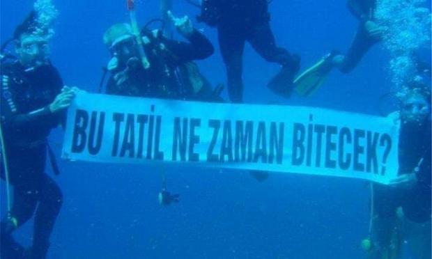 Την αρχή την έκαναν μέλη του ακραίου "Καλού κόμματος" της Τουρκίας που έκαναν κατάδυση στη κατεχόμενη Κερύνεια με ένα πανό που έγραφε πως η Αισέ μπορεί να φύγει πάλι για διακοπές. Να υπενθυμισουμε ότι οι τουρκικές ένοπλες δυνάμεις το 1974, ξεκίνησαν την εισβολή στη Κύπρο με το συνθηματικό: "Η Αϊσέ πάει διακοπές".