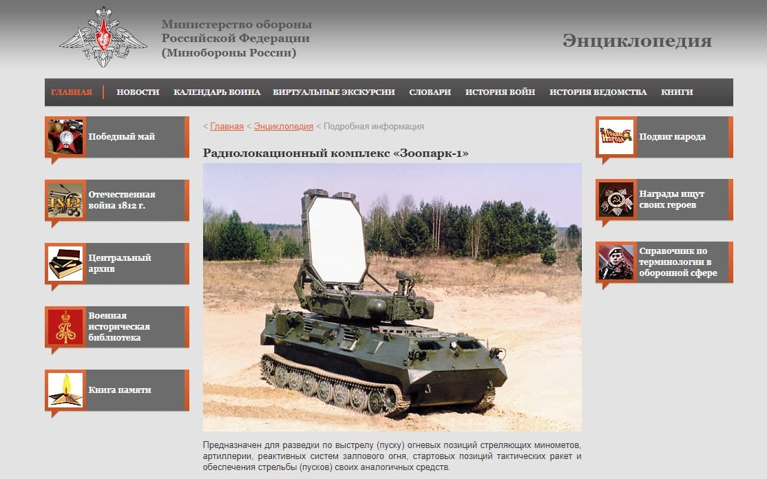 Το Υπουργείο Άμυνας της Ρωσικής Ομοσπονδίας δήλωσε ότι το σύστημα ραντάρ Zoopark-1 είναι ένα από τα καλύτερα συστήματα αναγνώρισης . Ανακαλύπτει εγκαίρως την τοποθεσία του εχθρού και καθορίζει την πορεία των φίλιων επιχειρήσεων.