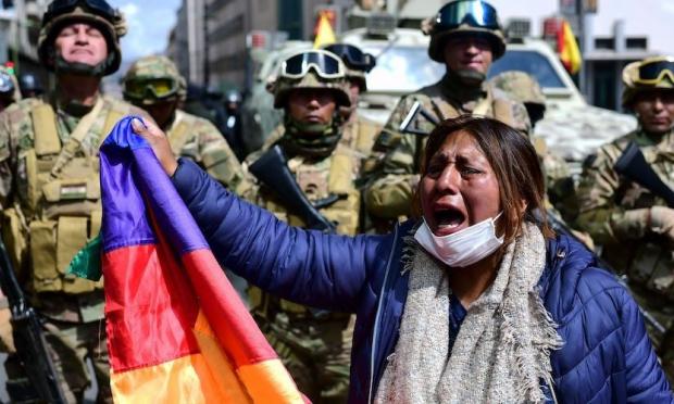 Μετά την παραίτηση του Μοράλες, που κατέφυγε στο Μεξικό, όπου του προσφέρθηκε πολιτικό άσυλο, υποστηρικτές του διαδηλώνουν εναντίον του «πραξικοπήματος» της αντιπολίτευσης.