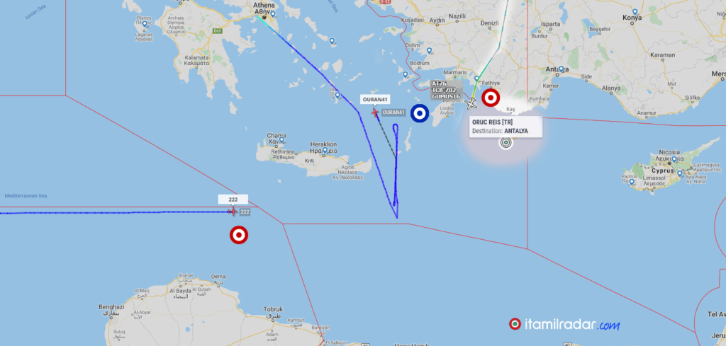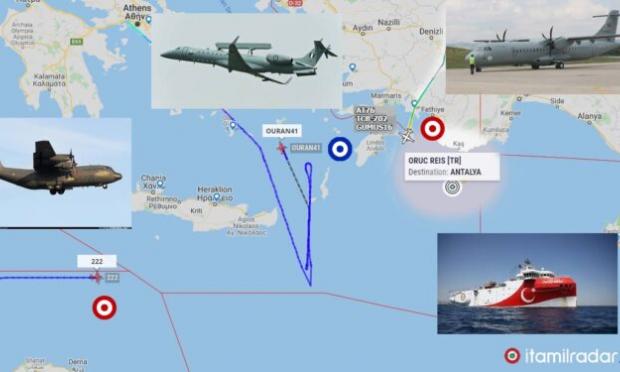 Ταυτόχρονα, ένα Embraer EMB-145 AEW & C (757) της Ελληνικής Πολεμικής Αεροπορίας, αναχώρησε από την Ελευσίνα και διεξήγαγε αποστολή επιτήρησης κοντά στο νησί της Καρπάθου, πιθανότατα για τον έλεγχο της περιοχής όπου δραστηριοποιείται παράνομα το τουρκικό ερευνητικό πλοίο Oruc Reis.