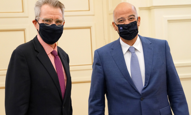 Συνάντηση με τον πρέσβη των ΗΠΑ στην Ελλάδα Τζέφρι Πάιατ πραγματοποίησε νωρίτερα σήμερα ο υπουργός Εξωτερικών Νίκος Δένδιας.
