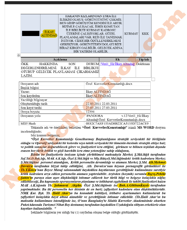 Στα αποκαλυπτικά αυτά στοιχεία για τις Ενοπλες Δυνάμεις κατέληξαν ερευνητές που εργάζονται για το γραφεία της Εισαγγελίας στη Νικομήδεια. Αστυνομικοί εισέβαλαν στην εξοχική κατοικία του αρχηγού της οργάνωσης, Μπιλγκίν Οζκαϊνάκ (ΦΩΤΟ), όπου και ανάκαλυψαν ένα φάκελο με το κωδικό όνομα «Πανδώρα».