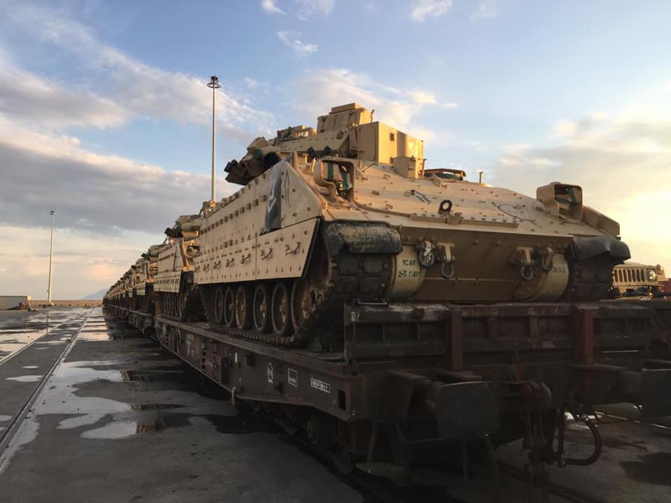 Το συγκεκριμένο πλοίο, που έχει μήκος 200 μέτρα (199.93 x 32.26 m) και ξεκίνησε από λιμάνι Κόπερ των ΗΠΑ, θα πάρει φεύγοντας μέρος μόνο των αρμάτων, ελικοπτέρων και άλλων οχημάτων, τα οποία μεταφέρθηκαν το προηγούμενο χρονικό διάστημα στο λιμάνι της Αλεξανδρούπολης με 8 αμαξοστοιχίες μέσω του σιδηροδρομικού δικτύου από την Ρουμανία, αλλά και με δεκάδες φορτηγά από την Πολωνία.