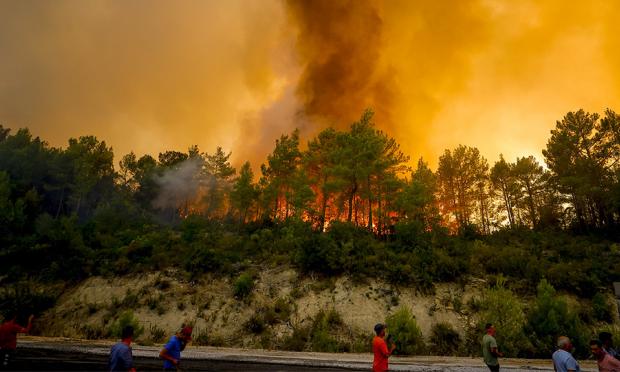 Απέναντι στην προέλαση της φωτιάς που απειλεί την Αττάλεια, το Μπόντρουμ (Αλικαρνασσός) και τη Μαρμαρίδα, εκατοντάδες τουρίστες και κάτοικοι απομακρύνονται από τα ξενοδοχεία και τις κατοικίες τους.