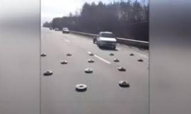Δημοσιεύτηκε ένα βίντεο με το πώς οι στρατιωτικοί «καθάριζαν νάρκες» με τα πόδια τους σε ένα τμήμα του αυτοκινητόδρομου κοντά στο Κίεβο, όπου τα αυτοκίνητα είχαν προηγουμένως κάνει ελιγμούς