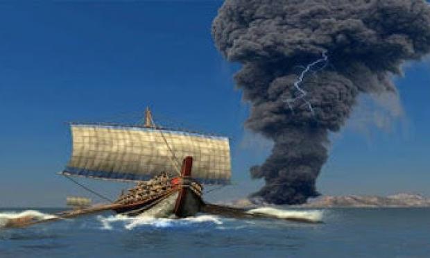 Αρχαιολογικά ευρήματα δείχνουν ότι στο Αιγαίο κυκλοφορούσαν οι πρώτες μορφές πλοίων απ’ το 7000 π.Χ. Οι πρώτοι γνωστοί που εμφανίζονται είναι οι Κυκλαδίτες (3000 – 2000 π.Χ.) οι οποίοι όμως δίνουν την θέση τους στους Κρήτες της Μινωικής περιόδου που είχαν ναυτικό στην βάση του κράτος (1700-1450 π.Χ.). Στα 1470 π.Χ. έγινε η έκρηξη του ηφαιστείου της Σαντορίνης με πολύ μεγάλη ισχύ. 5 φορές μεγαλύτερη απ’ την έκρηξη του Κρακατόα στην Ινδονησία.