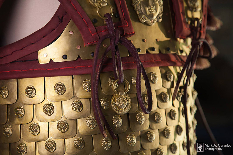 «Για την αναπαραγωγή της χρησιμοποιήθηκαν δέρμα, μετάξι, μπρούτζινα ελάσματα και λεοντοκεφαλές (αντί χρυσού που είναι τα αυθεντικά) τα οποία έντυσαν τον μεταλλικό σκελετό της πανοπλίας χαρίζοντας της ζωντάνια και λαμπρότητα. Θα πρέπει να θεωρούμε την εν λόγω πανοπλία ως ένα ολόσωμο κόσμημα για τον Φίλιππο, τόσο πολύτιμο που το ήθελε δίπλα του στην μετά θάνατο ζωή του» αναφέρει ο κ.Κατσίκης, επισημαίνοντας πως : «Οι τεχνικές που ακολουθήθηκαν για την κατασκευή του θώρακα παρέμειναν αποκλειστικά παραδοσιακές (έλαση με σφυρηλάτημα)».