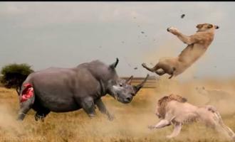 Ο λέοντας, εντωμεταξύ, αρκέστηκε να παρακολουθεί από το έδαφος γαλήνιος, χωρίς ίχνος διάθεσης να δοκιμάσει κι αυτός την τύχη του.
