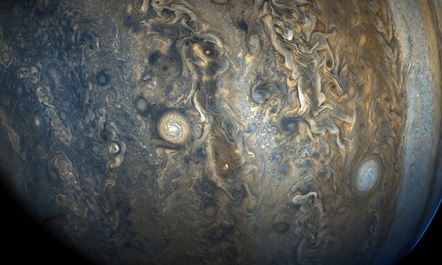Το διαστημικό σκάφος Juno της NASA, το οποίο βρίσκεται σε τροχιά γύρω από τον Δία από το 2016, συνεχίζει να προσφέρει πολύτιμα δεδομένα. Η ικανότητά του να περνάει κοντά από την επιφάνεια του πλανήτη και να χαρτογραφεί το βαρυτικό και μαγνητικό του πεδίο έχει επιτρέψει στους αστρονόμους να «δουν» κάτω από τα πυκνά νέφη.