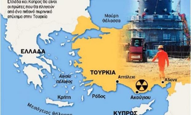 Β. Σε περίπτωση πυρηνικού ατυχήματος, είτε λόγω ισχυρού σεισμού, είτε λόγω ανθρωπίνου λάθους, όπως στο Τσερνομπίλ τον Απρίλιο του 1986, σύμφωνα με μελέτες Καναδών επιστημόνων, θα προσβληθούν με ραδιενέργεια δεκάδες εκατομμύρια κατοίκων από Ιταλία, Βαλκάνια και Μέση Ανατολή. Το  Αιγαίο Πέλαγος θα μολυνθεί για δεκάδες χρόνια και η Ελλάδα θα μολυνθεί μέχρι και εκατό φορές περισσότερο από άλλες πιο απομακρυσμένες περιοχές.