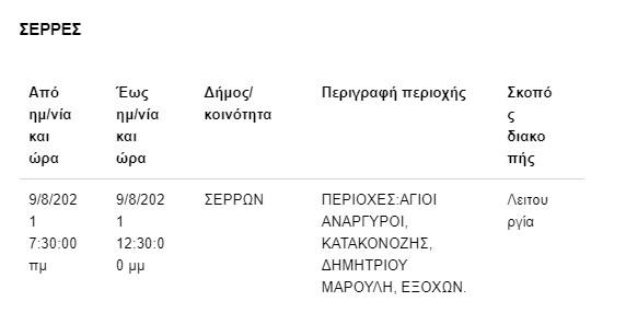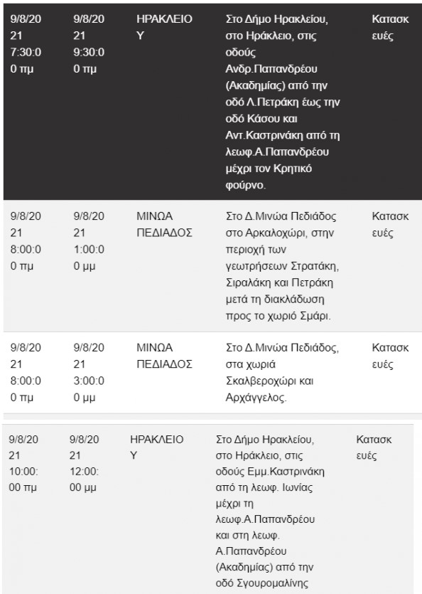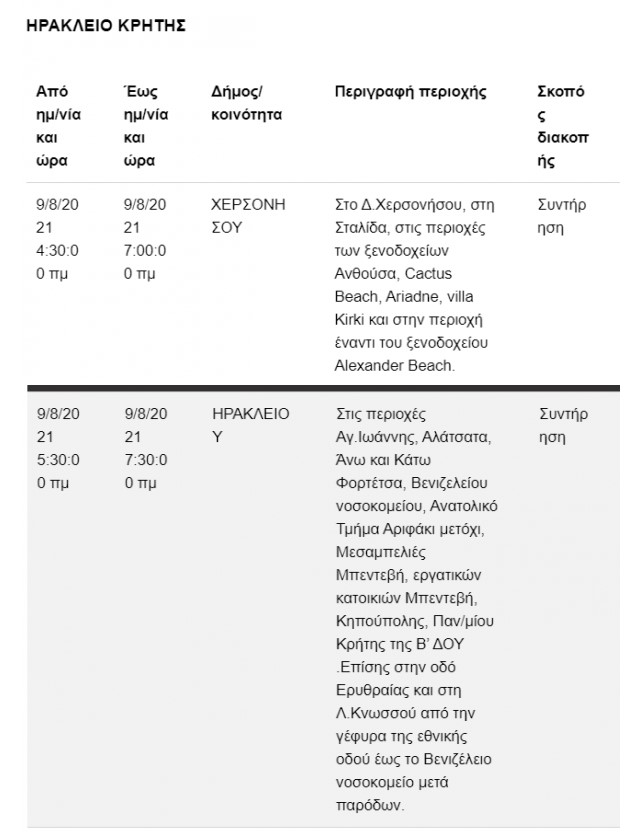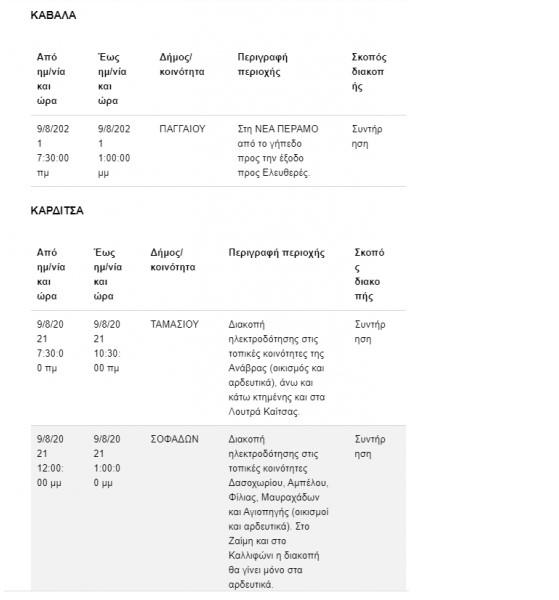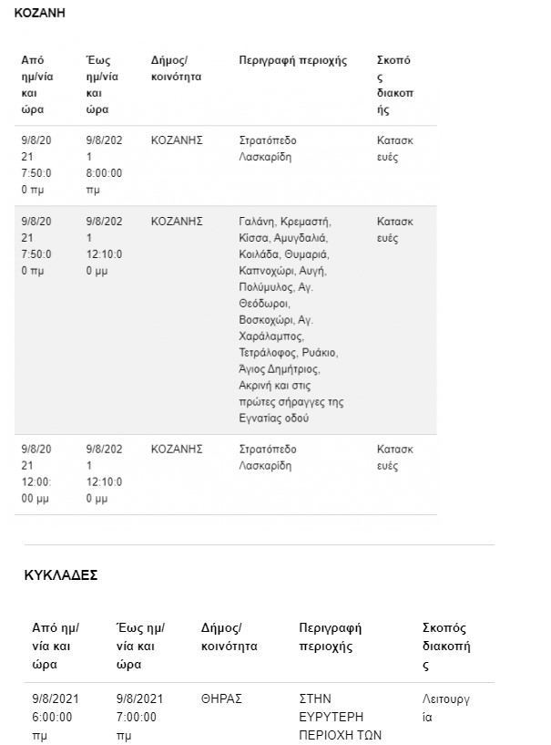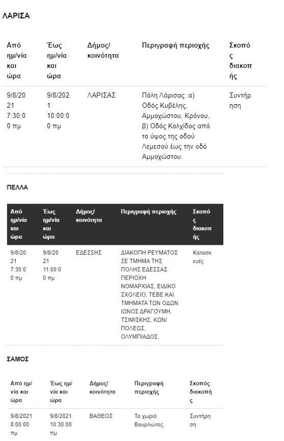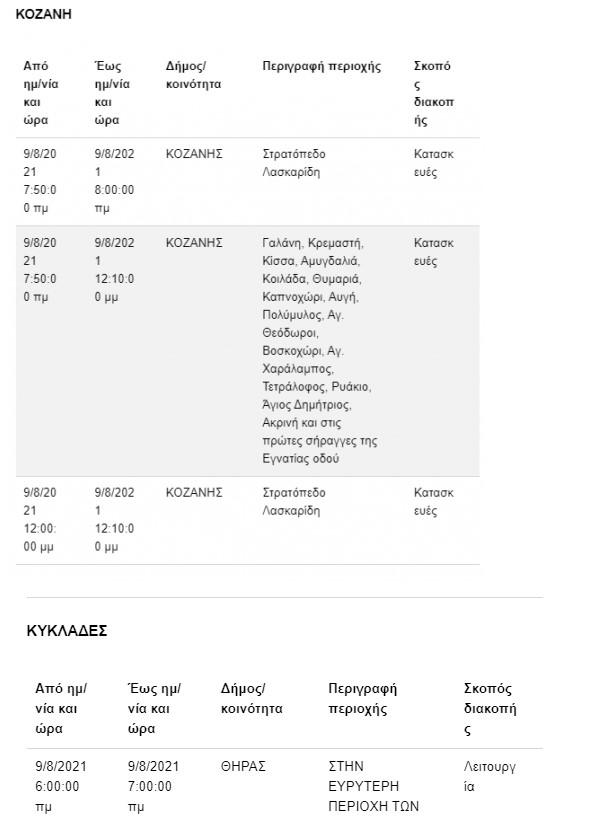 ΔΕΔΔΗΕ: Δείτε σε περιοχές θα γίνουν σήμερα διακοπές ρεύματος