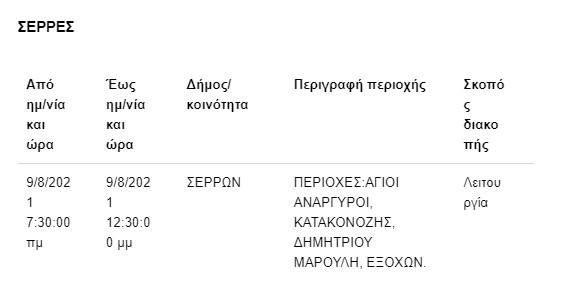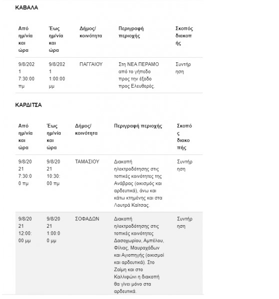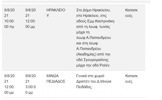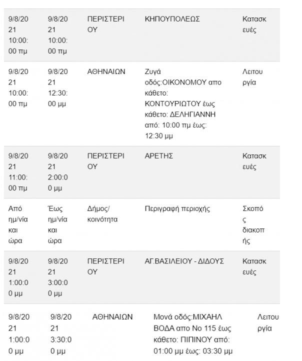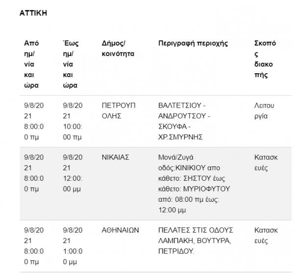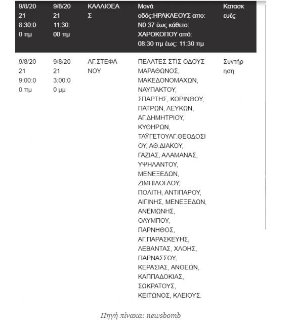 Στην Αττική διακοπές ρεύματος θα σημειωθούν σε Πετρούπολη, Νίκαια, Αθήνα, Καλλιθέα, Αγιο Στέφανο και αλλού.