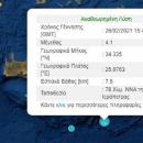 Ενέργεια 26.02.2021 - 20:49 0 Σεισμός σημειώθηκε το απόγευμα στα νότια της ΚρήτηςΤο εστιακό βάθος υπολογίστηκε στα 7,4 χλμ.
