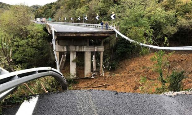Ο πρόεδρος της περιφέρειας της Λιγουρίας Τζοβάνι Τότι είπε ότι η σφοδρή κακοκαιρία προκάλεσε κατολίσθηση με αποτέλεσμα να καταρρεύσει η γέφυρα. Ένα αυτοκίνητο ενδέχεται να καταπλακώθηκε, όμως η πληροφορία αυτή δεν έχει επιβεβαιωθεί, σύμφωνα με το ιταλικό πρακτορείο Ansa.