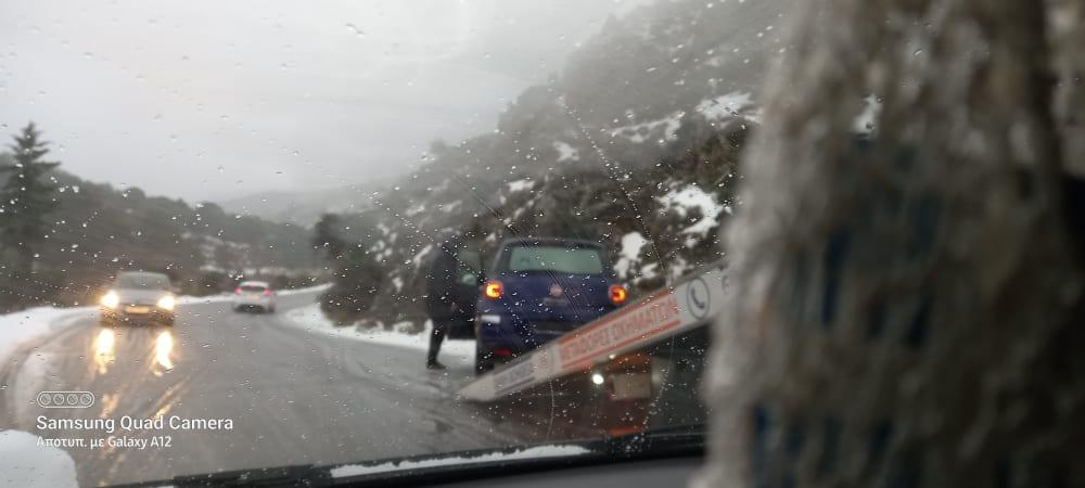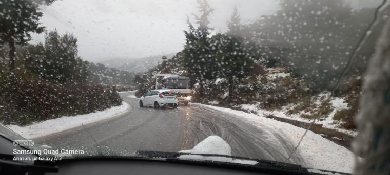 Εξαιτίας της επέλασης της κακοκαιρίας Carmel, η κίνηση στο οδικό δίκτυο της Κρήτης γίνεται μετ’ εμποδίων. Παρόλα αυτά, αρκετοί είναι εκείνοι που επέλεξαν να εκδράμουν στις ορεινές περιοχές, προκειμένου να δουν από κοντά τα χιόνια.