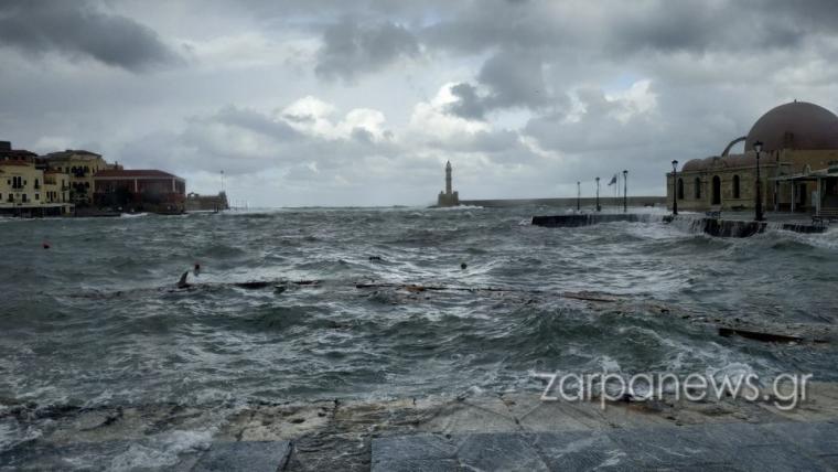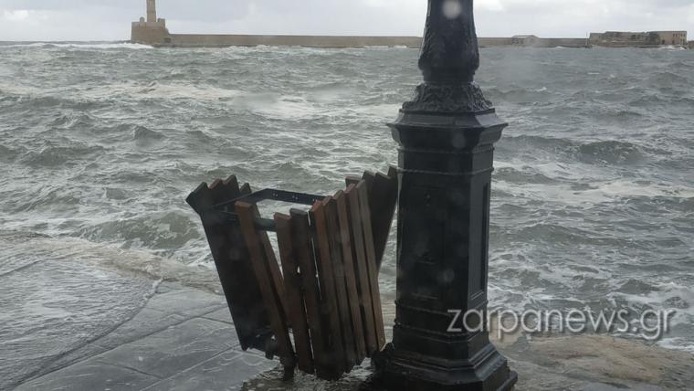 Όπως φαίνεται και στις φωτογραφίες του zarpanews.gr, από τα αγριεμένα κύματα ξηλώθηκαν παγκάκια, πλάκες από το πλακόστρωτο ενώ έσπασε και μέρος από ιστιοφόρο σκάφος που ήταν δεμένο στο Παλιό Λιμάνι στα Χανιά.