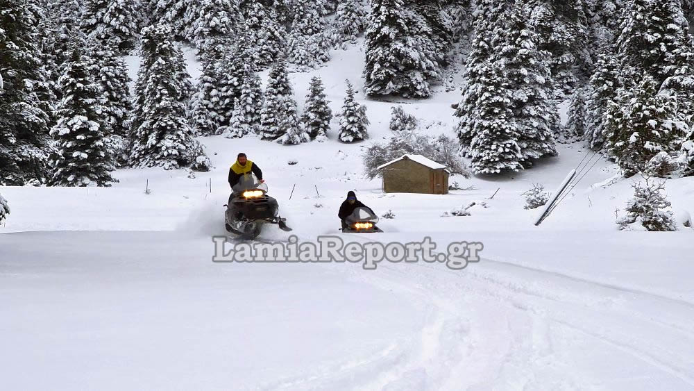 Λίγο πιο πάνω στο καταφύγιο “Οίτη” μπορείς να κάνεις snowmobile ανάμεσα στα χιονισμένα έλατα, απολαμβάνοντας την υπέροχη φύση.
