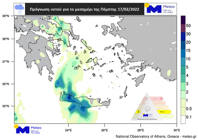 Στους χάρτες που ακολουθούν φαίνεται ο υετός που αναμένεται το μεσημέρι και το απόγευμα της Πέμπτης 17/02 στα νότια τμήματα της χώρας.