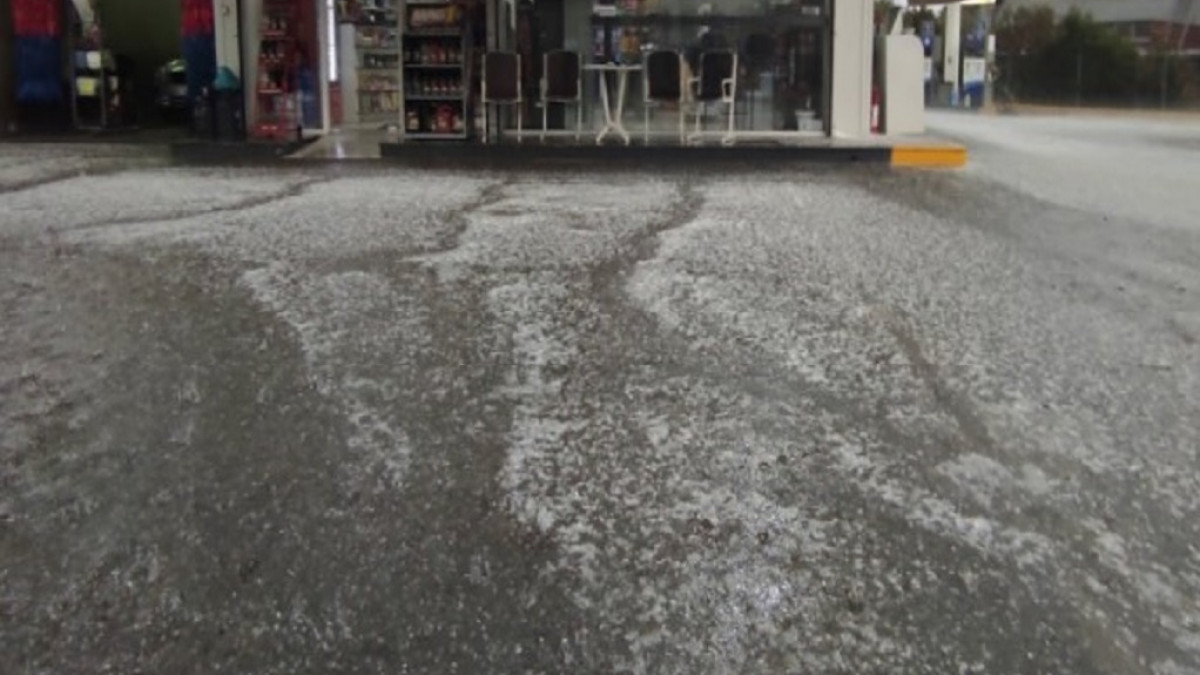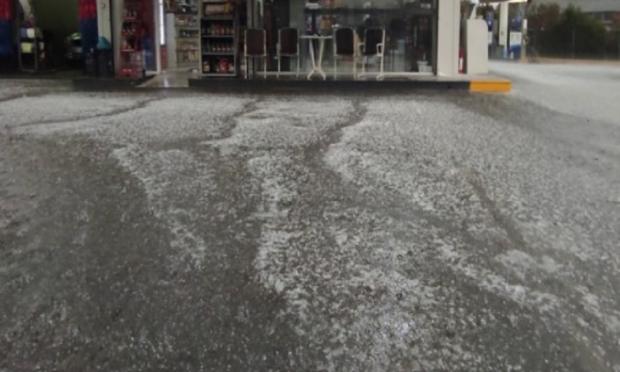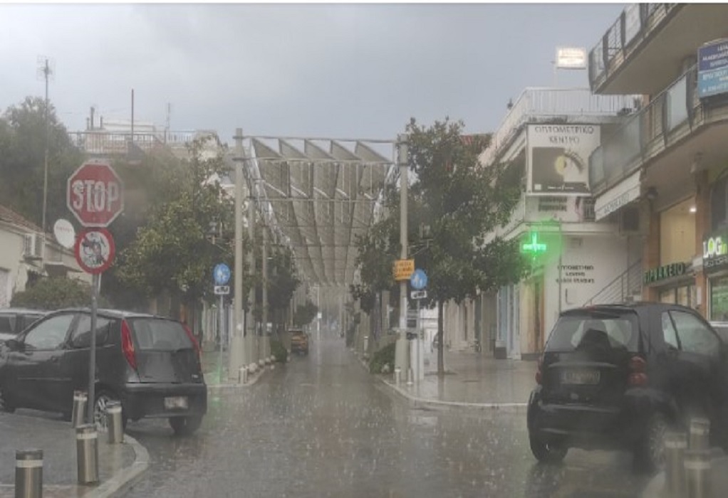 Λίγο μετά τις 17:30 η αρχική βροχή μετατράπηκε σε καταιγίδα και λίγο αργότερα «άσπρισαν» οι δρόμοι από το χαλάζι, το οποίο έπεφτε για αρκετή ώρα.