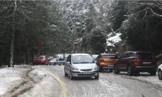 Καιρός: Κλειστή η λεωφόρος Πάρνηθας από το ύψος του τελεφερίκ, λόγω χιονόπτωσης