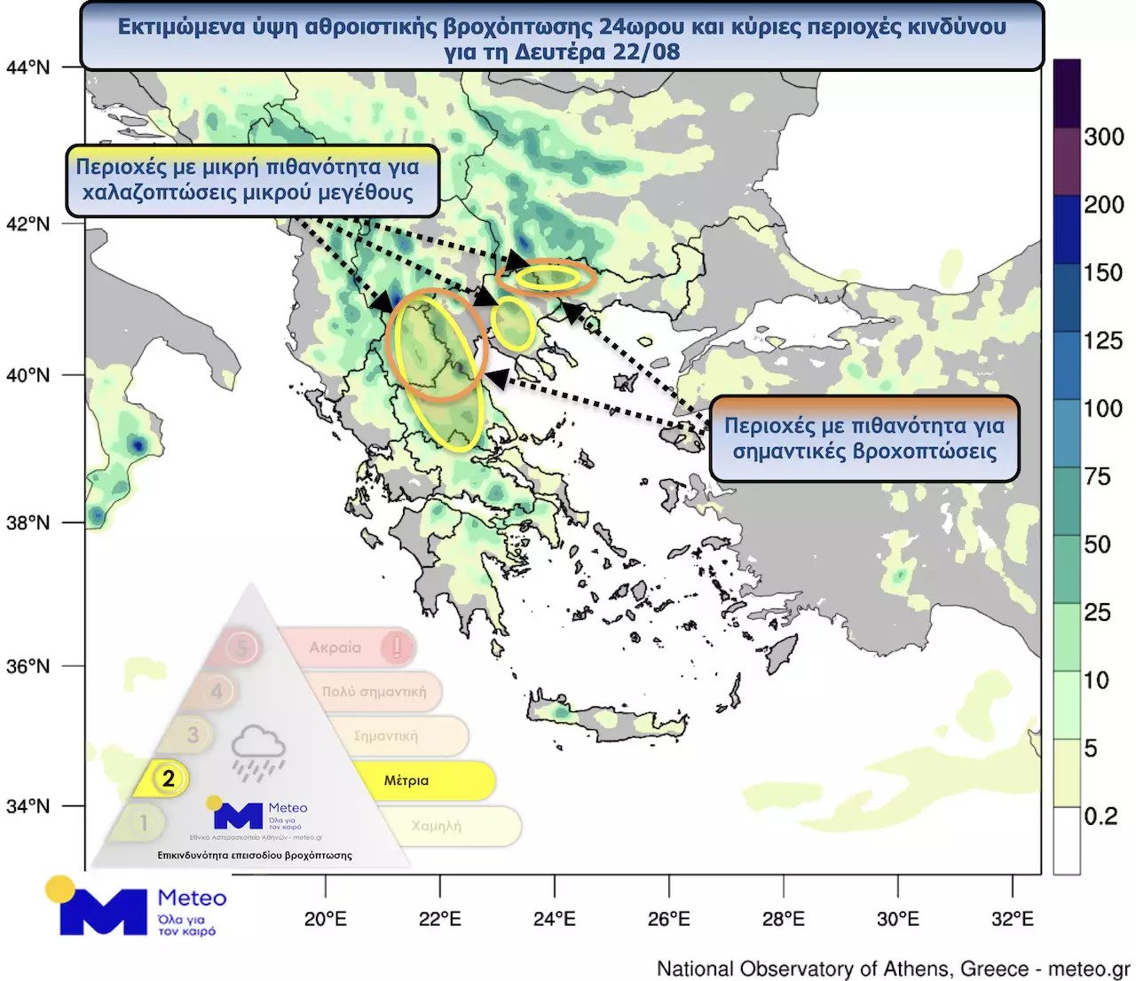 Το αναμενόμενο επεισόδιο βροχόπτωσης είναι Κατηγορίας 2 σύμφωνα με τον Δείκτη Επικινδυνότητας Επεισοδίου Βροχόπτωσης (Regional Precipitation Index – RPI) που έχει αναπτυχθεί και εφαρμόζεται επιχειρησιακά στο Εθνικό Αστεροσκοπείο Αθηνών / meteo.gr.