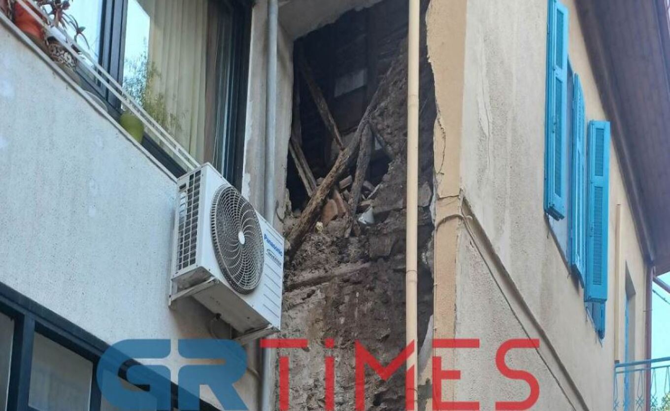 Όπως φαίνεται φωτογραφίες του GRTimes, τοιχίο κλασσικού μεν, αλλά κατοικήσιμου κτίσματος της περιοχής στην οδό Ρακτιβάν, κατέρρευσε σαν «χάρτινος πύργος» από την σφοδρότητα της κακοκαιρίας με αποτέλεσμα να φανούν μέχρι και τα έπιπλα του ιδιοκτήτη.