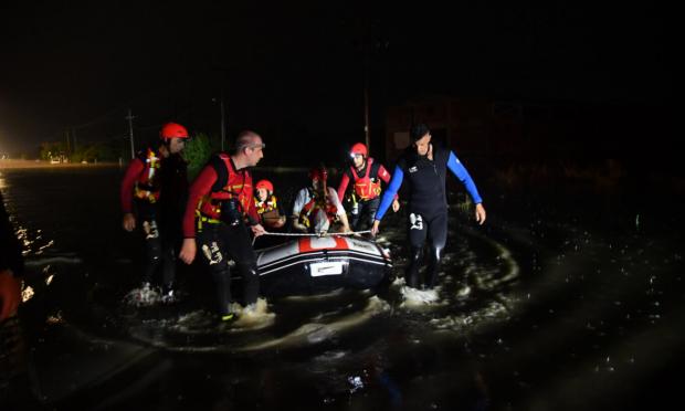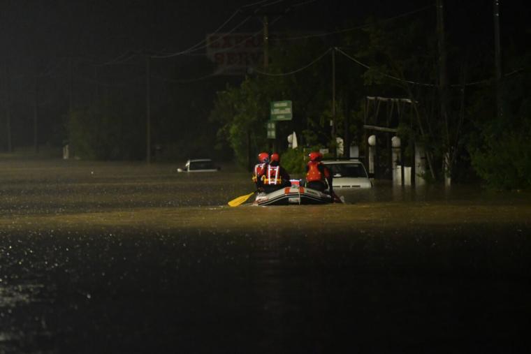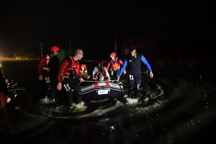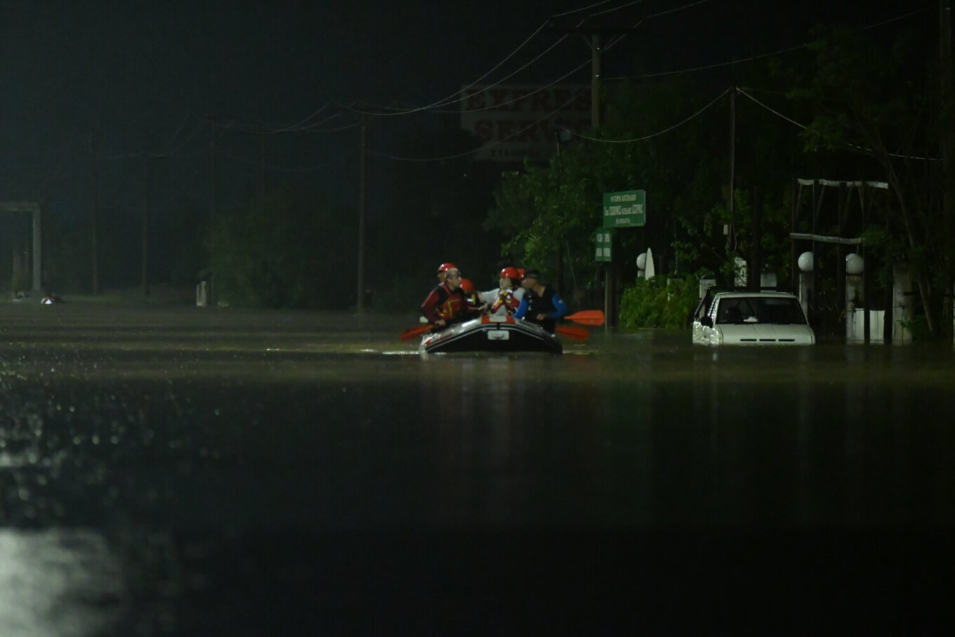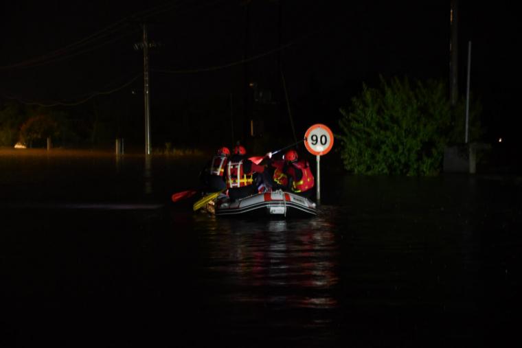 Συγκλονιστικές εικόνες στη Λάρισα - Άνδρες της ΕΜΑΚ κινήθηκαν με βάρκες, με το νερό να φτάνει το ένα μέτρο.