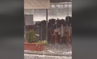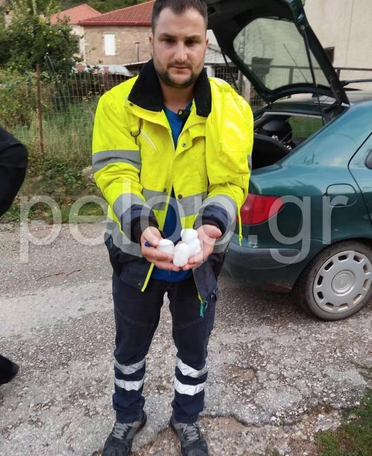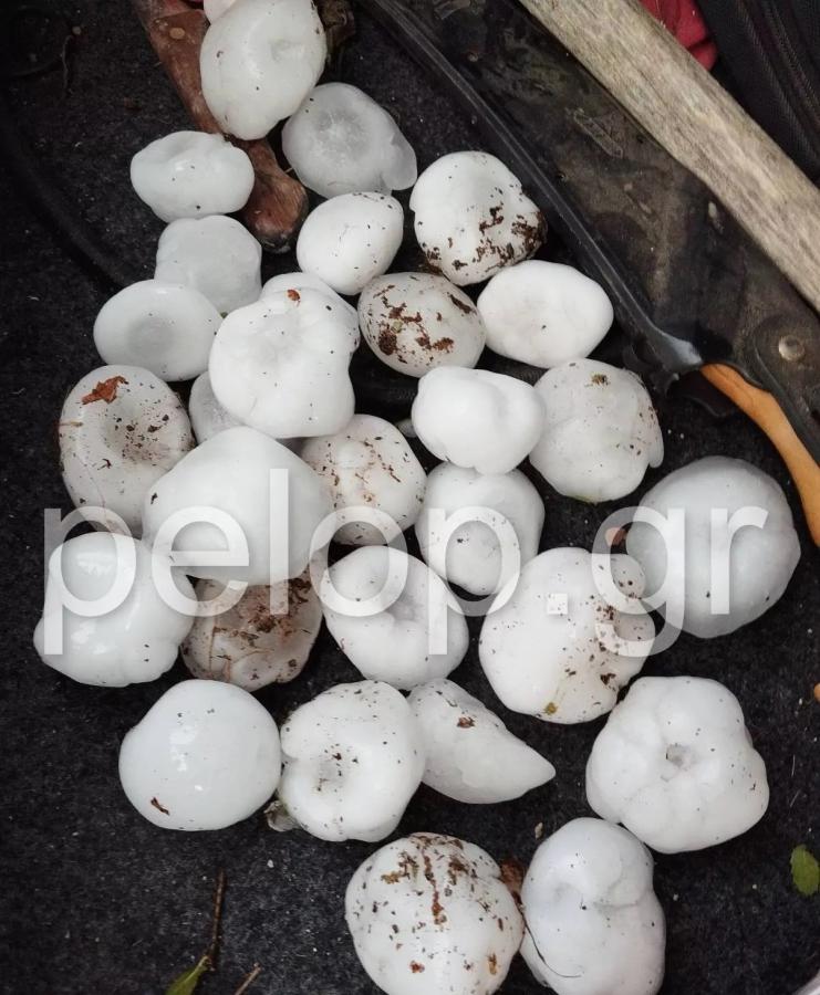 Συγκεκριμένα, στα Καλάβρυτα ξέσπασε έντονη χαλαζόπτωση με το χαλάζι να είναι σε μέγεθος πέτρας. Όπως φαίνεται και στις εικόνες του pelop.gr το χαλάζι ήδη έχει προκαλέσει ζημιές σε αυτοκίνητα, με τζάμια να έχουν σπάσει.