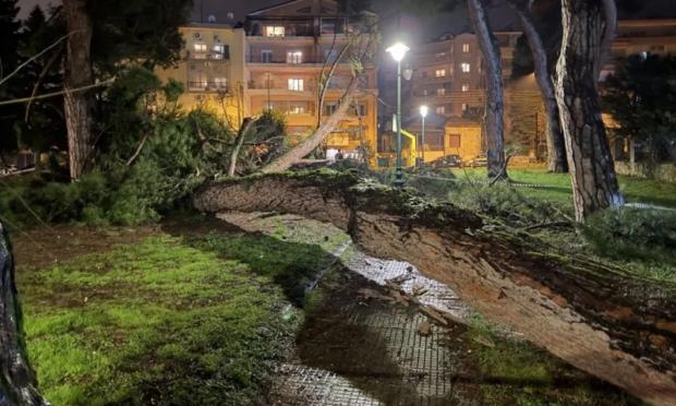 Ένα πανύψηλο πεύκο κατέρρευσε στα Γιάννενα απόψε το βράδυ μετά και την τελευταία βροχόπτωση.