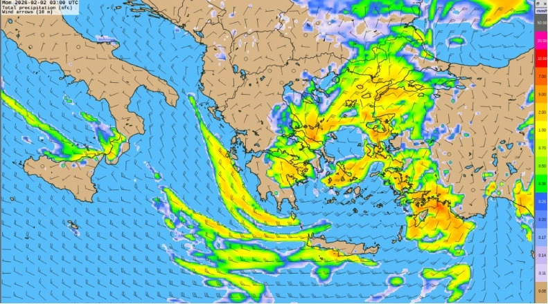 - Στα Δωδεκάνησα και την Κρήτη μέχρι τις πρωινές ώρες (πορτοκαλί προειδοποίηση)